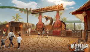As announced by Merlin Entertainments today, the world’s first “Jumanji”-themed coaster, which will open this spring at England’s theme park Chessington World of Adventures (about an hour’s drive southwest of London) as the main attraction of the new “World of Jumanji” theme area, will be called “Mandrill Mayhem”. Guests with a height of 1.20 meters or taller can look forward to a fast-paced adventure through the jungle with the namesake Mandrill monkeys. Following in the footsteps of “Dr. Smolder Bravestone”, the adventurer and archeologist from the popular Jumanji movies, visitors will be able to discover two more rides in the new area – “Mamba Strike” and “Ostrich Stampede”. Additionally, there will be a maze attraction based on the board game from the Jumanji story, as well as new F&B and shop offerings.