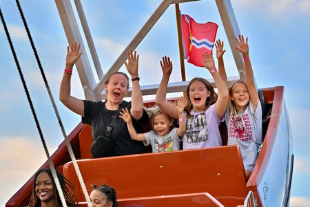 Loco Motion is a compact spinning coaster of the “Compact Spinning Coaster 123” model type, featuring a total track length of 403 feet (123 meters) and a maximum height of 16.5 feet (5.1 meters). The train accommodates 16 passengers and has a theoretical hourly capacity of around 370 riders. The ride is accessible to guests with a minimum height of 36 inches (90 centimeters). In addition to the coaster, two other classic rides have been added to the area: the “Galleon 42” pirate ship (Flying Louie) and the “Flying Carousel 64” wave swinger. Classic midway games round off the new family offering at the site.