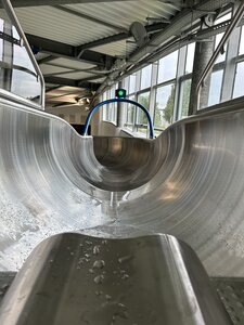 (eap) At France’s Complexe Aquatique Sceneo, located in St. Omer in the north of the country, bathing guests can discover two new water slides. During recent renovation works, the complex’ former indoor fiberglass water slide was dismantled – at its site, there are two new attractions now. The German company of wiegand.waterrides supplied a giant water slide and a wave slide to the water complex. In cooperation with its French partner CARATECH, the manufacturer installed the 48-meter-long tube slide at a height of over four meters. A special feature is its first curve, which is suspended from the ceiling (instead of having been constructed on supports). The wave slide is 16.9 meters long and starts from a height of approx. three meters. Both attractions are made of stainless steel and were painted in blue on the outside.